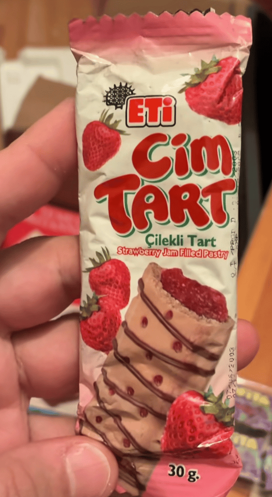 Eti'nin 25 yıl önce üretip satışa sunduğu Eti Cim Tart markalı çilekli tart içeriğinde sadece %0,18 yani binde 1,8 oranında çilek pulpu bul...