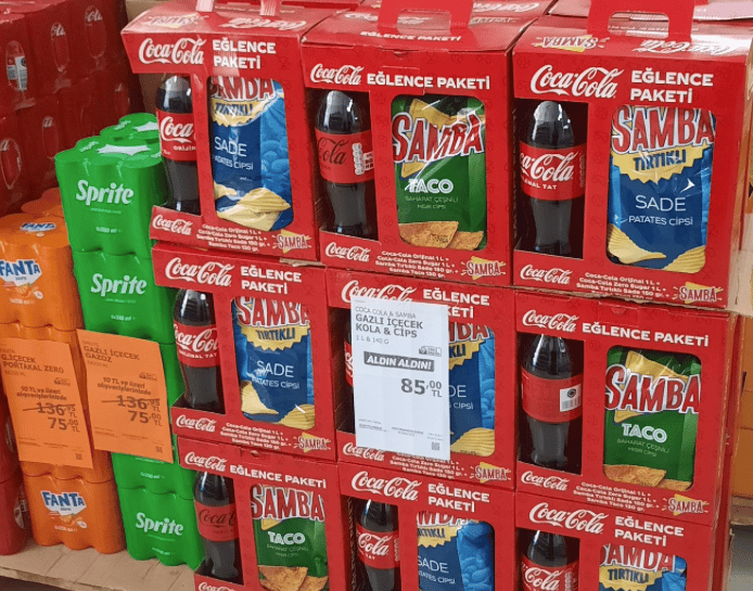 Soykırımcı İsrail askerlerinin severek tükettiği Coca Cola ve türevleri, cipslerle birlikte "Eğlence paketi" olarak satışa sunulurken diğer yandan Gazze'de açlık ve sefalet sürüyor.