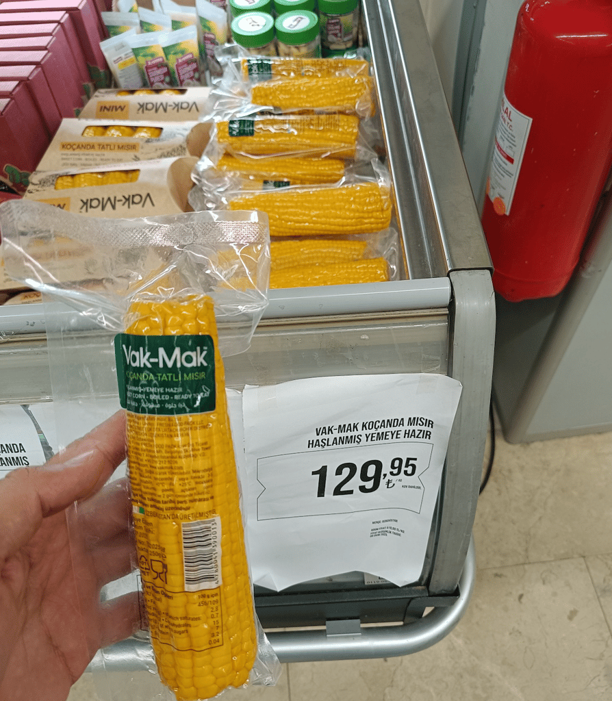 Sonunda bunu da gördük! Migros mağazalarında, Özbekistan'dan ithal haşlanmış mısır koçanları tanesi 130₺'ye satılmaya başladı. Özbekistan'da mısır tarımı 60 bin hektarda yapılırken, Türkiye'de 760 bin hektarda üretim yapıldığı belirtiliyor.