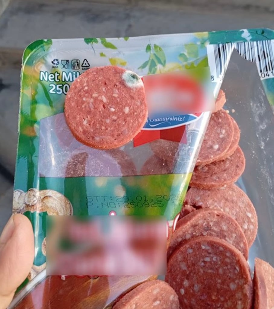 Marketten alınan sucuğa ilişkin paylaşılan görselde ürünün son tüketim tarihi geçmemesine rağmen küflendiği görülüyor.