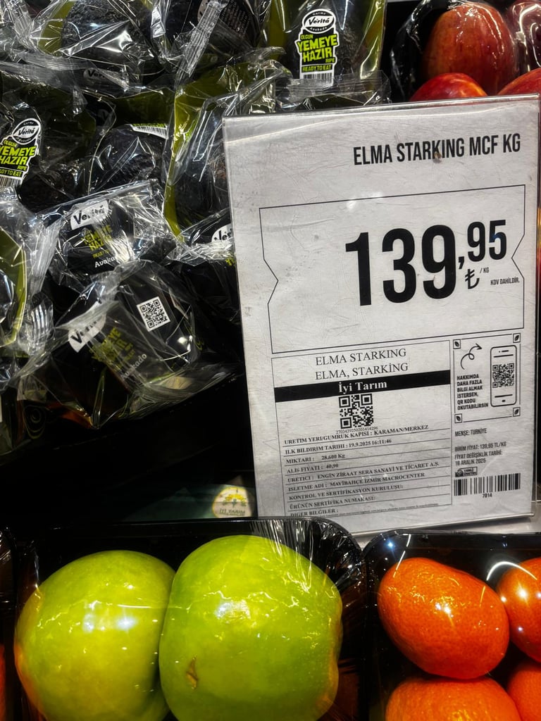 Migros mağazalarında kg fiyatı 140₺'ye satışa sunulan starking cinsi elmaların, Hal Kayıt Sistemi verileri üzerinden Karaman'daki üreticisinden sadece 40₺'ye satın alındığı görülüyor.