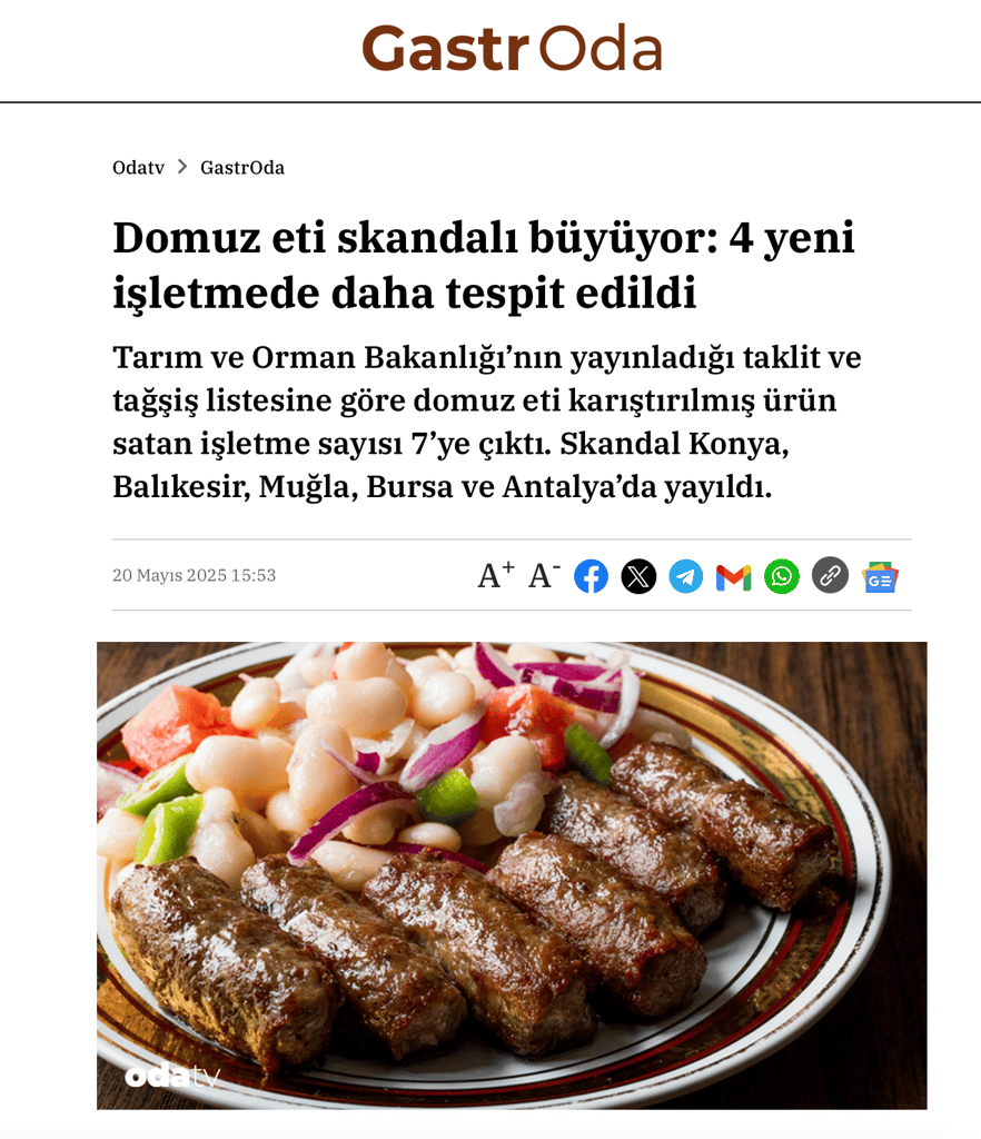 Köfteci Yusuf'un domuz eti ifşası dün ilk olarak Odatv denen haber organında "Domuz eti skandalı büyüyor: 4 yeni işletmede daha tespit edildi" manşetiyle gündeme gelmişti. Yeni bir ifşa gibi gösterilen ve bu yönde algı oluşturulan bu haberde geçmiş yıllarda bakanlık tarafından yapılan domuz eti tespitleri, yeni tespitlermiş gibi gösterilmişti. Haber metninde "Tarım ve Orman Bakanlığı’nın yayınladığı taklit ve tağşiş listesine göre domuz eti karıştırılmış ürün satan işletme sayısı 7’ye çıktı. Skandal Konya, Balıkesir, Muğla, Bursa ve Antalya’da yayıldı." ifadeleriyle bakanlığın yeni domuz eti tespitleri yayınladığı algısı oluşturuldu. Haberde ayrıca "Tarım ve Orman Bakanlığı'nın ifşa listesi genişliyor. Domuz eti satışı yapılan işletmelerin sayısı 7’ye yükseldi. Tarım ve Orman Bakanlığı'nın 2 Ekim 2024 tarihinde kamuoyuyla paylaşmaya başladığı "Taklit ve Tağşiş Yapılan Gıdalar Listesi", gıda güvenliği konusundaki endişeleri artırmaya devam ediyor." ifadeleriyle halkta panik havası oluşturulmaya çalışılarak, Köfteci Yusuf'ta tespit edilen domuz eti de yeniden gündeme getirildi.