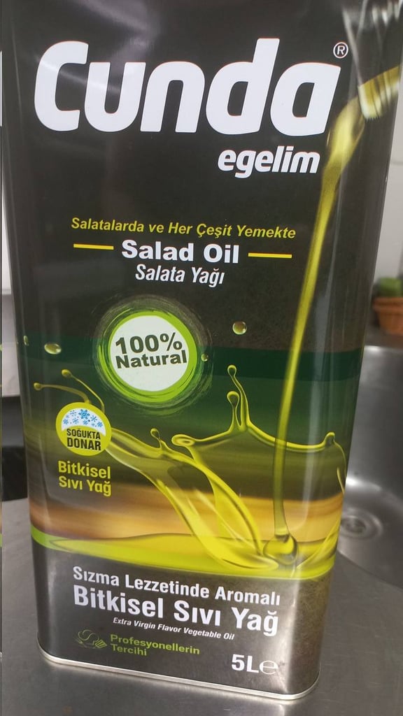 Tarafımıza iletilen ürünlerden ilki incelendiğinde Cunda Egelim imsiyle satılan ürünün ambalajında “salata yağı” ifadesi yer alırken, ayrıca “sızma lezzetinde aromalı bitkisel sıvı yağ” ibaresi de yer alıyor. Ürünün ambalajında yer alan “soğukta donar” gibi ifadelerle zeytinyağı çağrışımı yapılmaya çalışıldığı görülüyor. Diğer yandan ürünün ambalajında “bitkisel sıvı yağımız yüksek teknoloji kullanılarak üretilmiş” ifadeleri yer alırken, üretici firmanın TR-34-K-21050 kayıt numarasıyla İstanbul Sultanbeyli’de faaliyet gösteren Egelim Yağ firması olduğu anlaşılıyor. Ürün içeriğinde ise pamuk yağı ile zeytinyağı aroma vericisi ve zeytinyağı rengi vermek üzere renklendirici kullanıldığı anlaşılıyor.