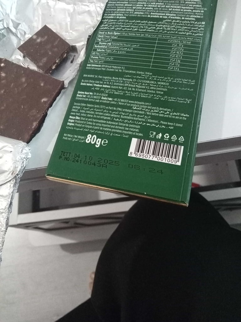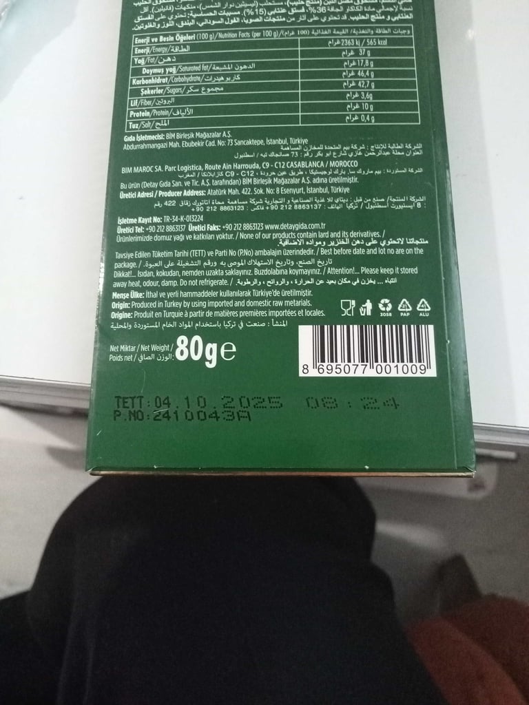 Bugün Isparta Merkez Yedişehitler Mahallesi'nde Cuma Pazarı karşısında bulunan BİM mağazasından aldığım Buono marka Antep Fıstıklı çikolatayı açtıktan sonra çikolatanın arkasındaki beyazlıktan şüphelenerek tüketim tarihine baktığımda TETT tarihini 2 ay geçtiğini farkettim.