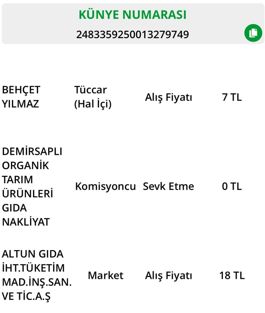 Happy Center isimli işletmede 59,95₺'ye satışa sunulan domateslerin üreticiden sadece 7₺'ye alındığını Hal Kayıt Sistemi verileri üzerinden tespit ettik! Yaptığımız incelemede Muğla'nın Fethiye ilçesine bağlı Karaçulha köyünde Mahmut Işıklı isimli üreticiden kilosu 7 ₺'den alındığı görülüyor. Hal içinde ise 18 ₺'ye Altun Gıda'ya yani Happy Center mağazalarına satılıyor.