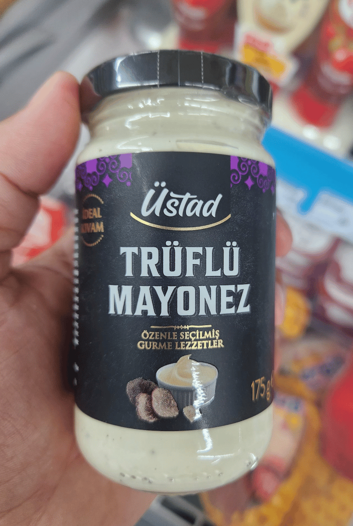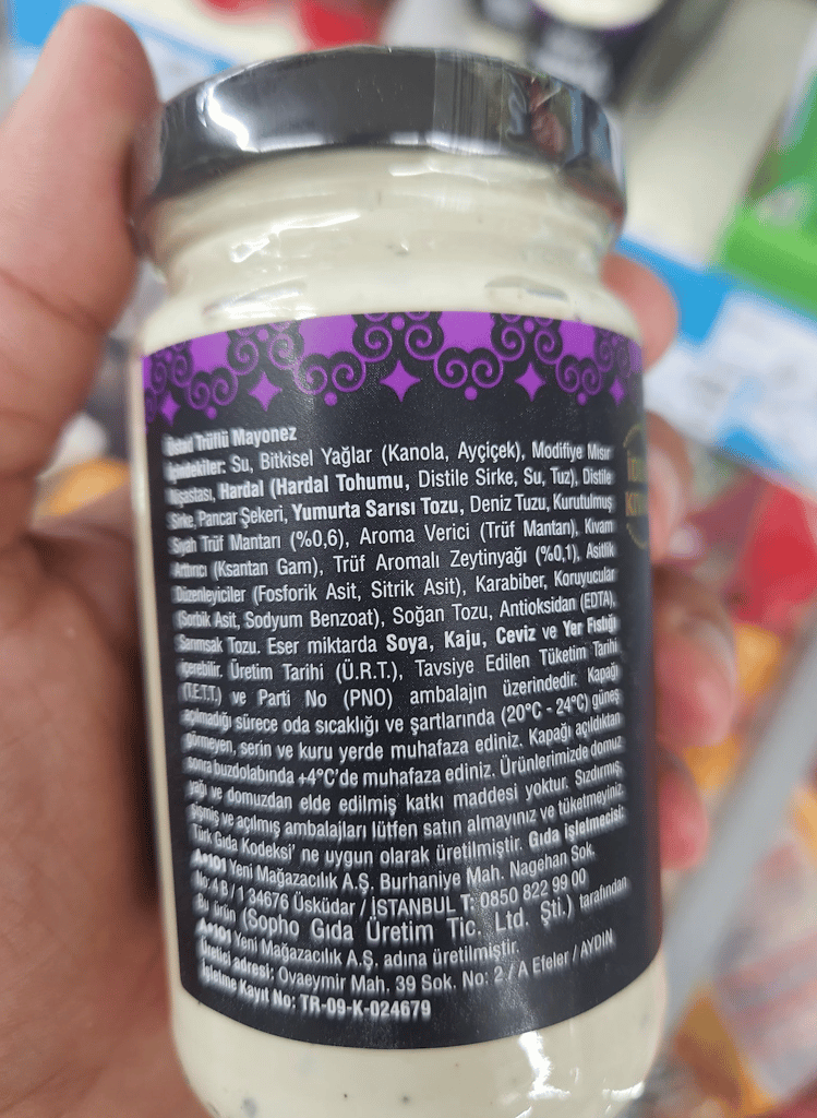 A101 mağazalarında satışa sunulan ve "özenle seçilmiş gurme lezzetler" sloganıyla satışa sunulan Üstad markalı Trüflü mayonez içeriğinde;