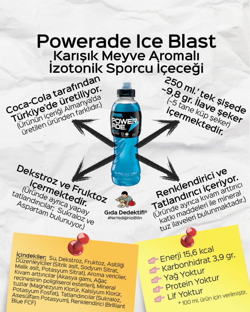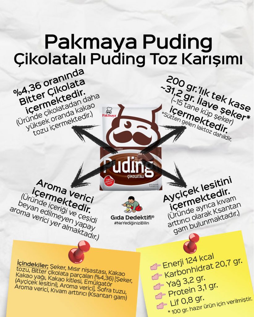 Ürün bu temel içeriklerin yanında arpa maltı ekstresi, nem verici olarak gliserol, ayçiçek yağı, tuz, mısır irmiği ve pirinç unu ile kakao tozu içeriyor. Üründe ayrıca daha tam buğdaylı görünüm vermesi adına ürüne koyuluk verecek melas bulunuyor. Üründe ayrıca antioksidan olarak tokoferolce zengin ekstrakt ve alfa-tokoferol ile vitamin ve mineral ilaveleri bulunuyor. Ürün palm yağı veya türevlerini içermezken, üründe koruyucu ya da renklendirici herhangi bir katkı maddesi bulunmuyor. Bu haliyle 23,5 gr.’lık tek paket ürün 91 kcal enerji veriyor. Tek pakette 16 gr. karbonhidrat ve 1,6 gr. lif bulunduğunu yazmıştık, bunun yanı sıra ürün tek pakette 1,9 gr. yağ ve 1,5 gr. protein ihtiva ediyor. Bu haliyle üründen alınan kalorinin %70’i karbonhidrattan gelirken, %18’i yağdan ve %6’sı proteinden gelmektedir. Bu haliyle karbonhidrat ağırlıklı olarak kalori veren üründe bu kalorinin önemli bir kısmı da sofra şekeri, glikoz şurubu ve invert şeker şurubu gibi sağlıklı denemeyecek kalori kaynaklarından geliyor. Üründe ayrıca tek pakette 0,38 mg. Riboflavin, 3,7 mg. Niasin, 0,32 mg. B6 vitamini, 43,9 mcg Folik asit, 1,4 mg. Pantotenik asit, 181 mg. Kalsiyum ve 2,9 mg. Demir bulunuyor. Bu vitamin ve mineral ilaveleri tek pakette günlük ihtiyacın ortalama olarak dörtte birine yakın karşılamaya yetiyor. #NeYediğiniziBilin
