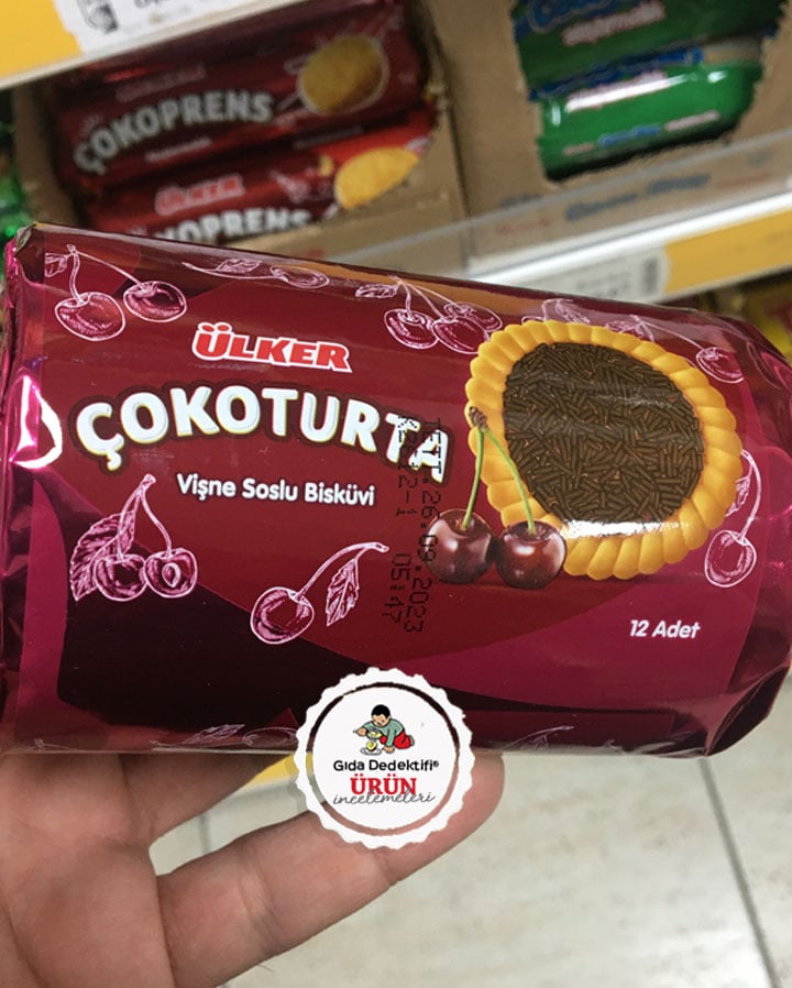 Ülker firması tarafından üretilerek son dönemde market raflarında görmeye başladığımız Çokoturta ürününü inceleyeceğiz. Görsel ve içerik açısından çok uzun yıllardır raflarda yer alan Eti Cin’in benzeri olarak karşımıza çıkan ürün “Vişne soslu bisküvi” olarak tanımlanıyor. 300 gr.’lık paketlerde satılan ürün içeriğinde 12 adet bisküvi yer alıyor. Buna göre tek bir bisküvi 25 gr. olarak hesaplanıyor. Ürün ambalajında vişne görselleri yer alırken üründeki vişne oranı ise diğer Ülker ürünleriyle karşılaştırıldığında artık bizleri şaşırtmıyor.