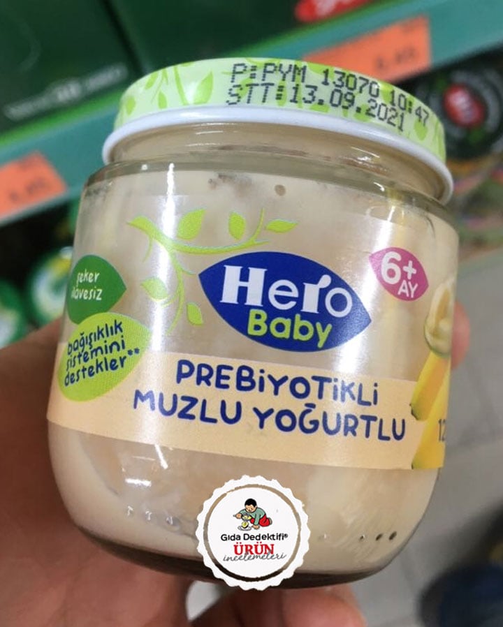 Uzun zamandır incelemediğimiz bebek ek gıdalarından kavanoz mamalara bakacağız. 2017 yılında Gıda Dedektifi’ne ilk başladığımızda neredeyse her kavanoz mamada sofra şekeri ilavesine rastlıyorken; artık market raflarında şeker ilavesiz ibaresiyle satılan ürünlere rastlamak çok mümkün. Hatta toplumda oluşan farkındalık ve talep çerçevesinde bu ürünlerin yavaş yavaş çoğunluğu aldığını da söyleyebiliriz. İnceleyeceğimiz Hero Baby Prebiyotikli Muzlu Yoğurtlu Ek Gıda da içeriğinde sofra şekeri içermemesiyle dikkat çekiyor. Ürünün 120 gr.’lık cam kavanozlarda 6 ay ve üzeri bebeklere yönelik satıldığını görüyoruz. Burada özellikle “ek gıda” ibaresinin altını çizmemiz gerekiyor. Öyle ki, ilk 6 ay başta olmak üzere 2 yaşa kadar bir bebeğin temel gıdasının anne sütü olduğunu hatırlatmamız gerekiyor.