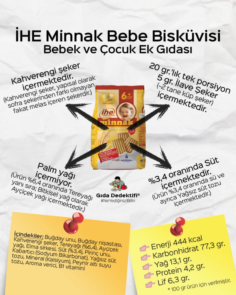 Üründe ilk sırada sofra şekeri olduğunu belirtmiştik, bunun yanında ürünün invert şeker şurubu içerdiğini de söylemiştik. Ürün bu haliyle 100 gr.’da 66 gr. Karbonhidratta 21 gr. şeker içeriyor. Bu da 75 gr.’lık tek pakette ürünün 15,8 gr. şeker içerdiğini gösteriyor – ki tek pakette yaklaşık 8 tane küp şekere denk gelmektedir. Üründe bu karbonhidrat ve şeker yüküne karşılık 1,6 gr. lif bulunuyor. Bu haliyle ürünün tek paketinden 355,5 kcal enerji alınırken bu kalorinin %17,7’sinin ilave şekerden ve %16,8’inin de doymuş yağdan geldiğini söyleyelim. Son olarak ürün içeriğinde koruyucu katkı maddesi bulunmadığını da ekleyelim.