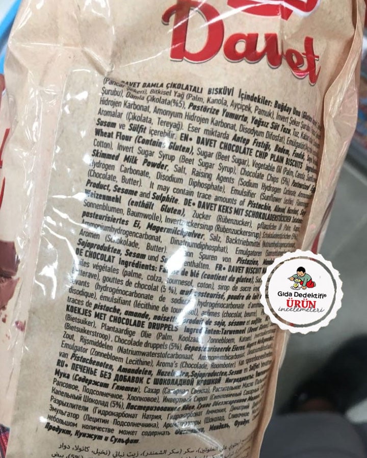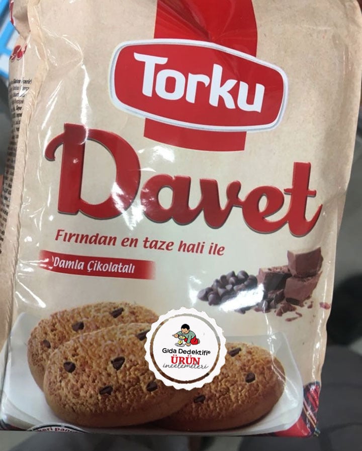“Doğal olarak” sloganıyla satılan fakat içeriğinde şaşırtıcı şekilde yapay çikolata aroması ve yapay tereyağ aroması bulunan Torku’nun Davet çay saati ürününü inceleyeceğiz; Torku Davet Damla Çikolatalı Bisküvi. Ürün 180 gr.’lık paketlerde satılıyor. “Fırından en taze haliyle” ifadesiyle satılan üründe ilk 3 sırada; Buğday unu, Şeker ve Bitkisel yağlar bulunuyor. Ürün sofra şekerinin yanı sıra; invert şeker şurubu içeriyor.