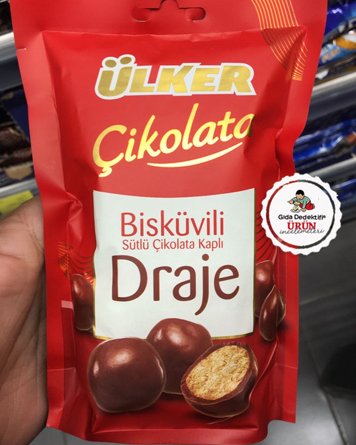 Ülker Çikolata markasıyla market raflarında görmeye başladığımız bisküvili draje çikolataları inceleyeceğiz: Ülker Çikolata Bisküvi Sütlü Çikolata Kaplı Draje. Ürün 150 gr.’lık paketlerde satılıyor. Ambalajdaki etiket verileri üzerinde ürünün Türkiye’deki Ülker tesislerinde üretildiği anlaşılıyor.