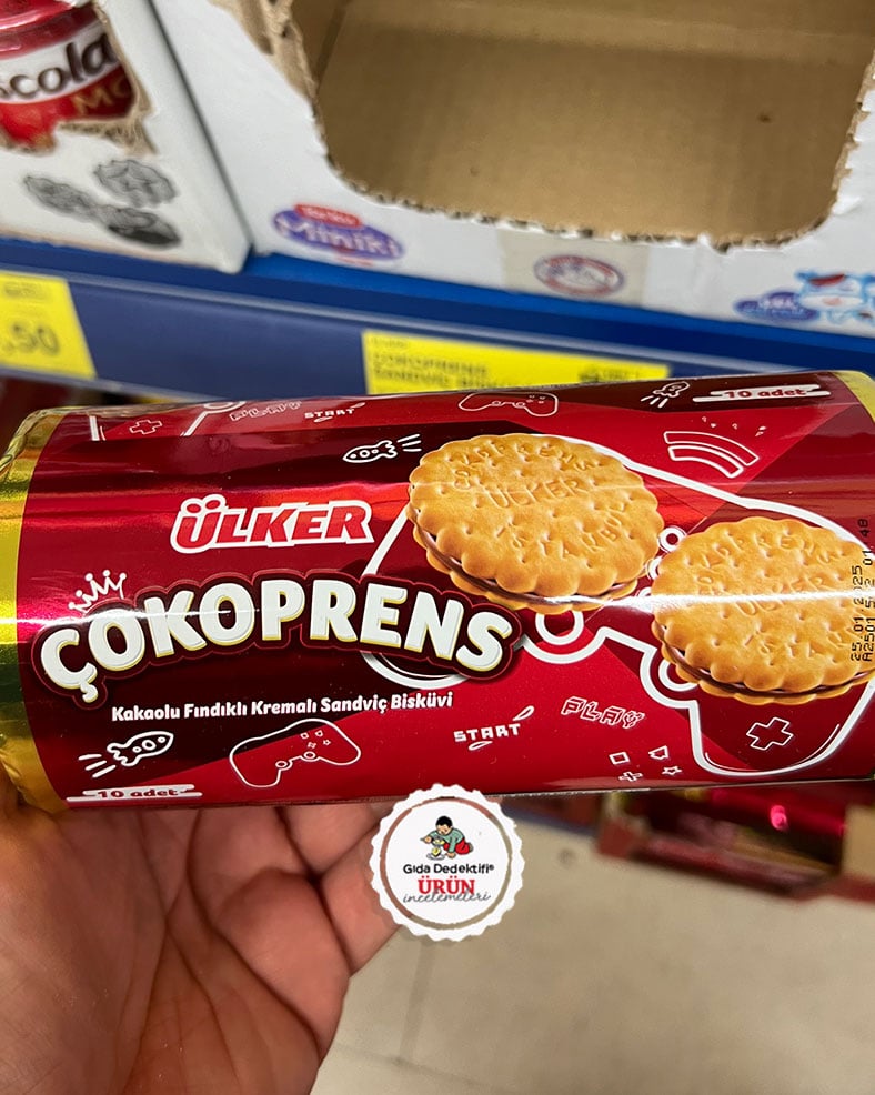 🔍İçindekiler: Buğday unu, Bitkisel yağlar (Palm, Tam hidrojenize palm, Ayçiçek, Kanola), Şeker, İnvert şeker şurubu, Nişasta, Fındık püresi (%3,4), Peyniraltı suyu tozu, Kabartıcılar (Amonyum hidrojen karbonat, Disodyum difosfat, Sodyum hidrojen karbonat), Yağı azaltılmış kakao tozu (%1,3), Tuz, Emülgatör (Soya lesitini), Aroma vericiler, Asitlik düzenleyici (Sitrik asit), Un işlem maddesi (Sodyum metabisülfit)