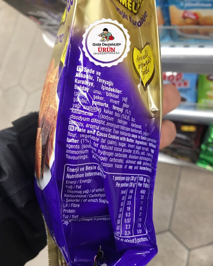 Geçtiğimiz aylarda “Anne ele değmiş gibi” sloganıyla satılan bu ürünle ilgili paylaşımımız sebebiyle “sloganı kötüleyici” olduğu iddiasıyla hesabımıza yönelik suç duyurusu ve davalar açılmış, paylaşımlarımız durdurulmaya çalışılmıştı. Ürün Tereyağlı olarak satılmasına rağmen %1 oranında tereyağı içermesi ve bunun yanında içerikte 2. sırada bitkisel yağ olarak Palm yağı bulunmasını tüketicinin farkındalığı kapsamında yayınlamamız bile birilerini rahatsız etmeye yetti. “Bu pakette annenizin kurabiyesinin lezzeti var.” ifadeleriyle satılan bu kurabiyenin içeriğini yasal beyanlar ve besin değerleri üzerinden gelin bir de detaylarıyla bakalım.