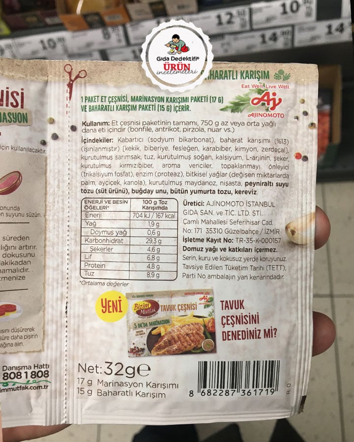 🔎Ajinomoto Bizim Mutfak Et Çeşnisi Besin Değerleri
