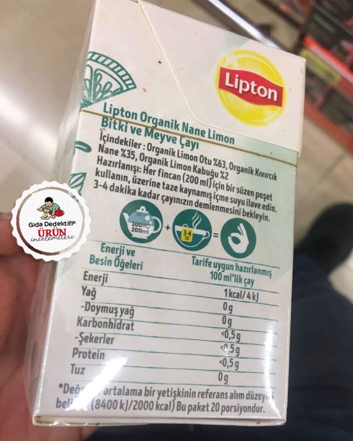🔍Lipton Organik Nane Limon Besin Değerleri