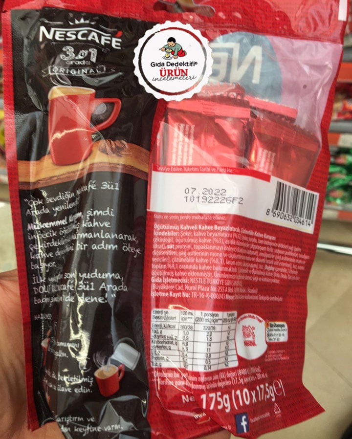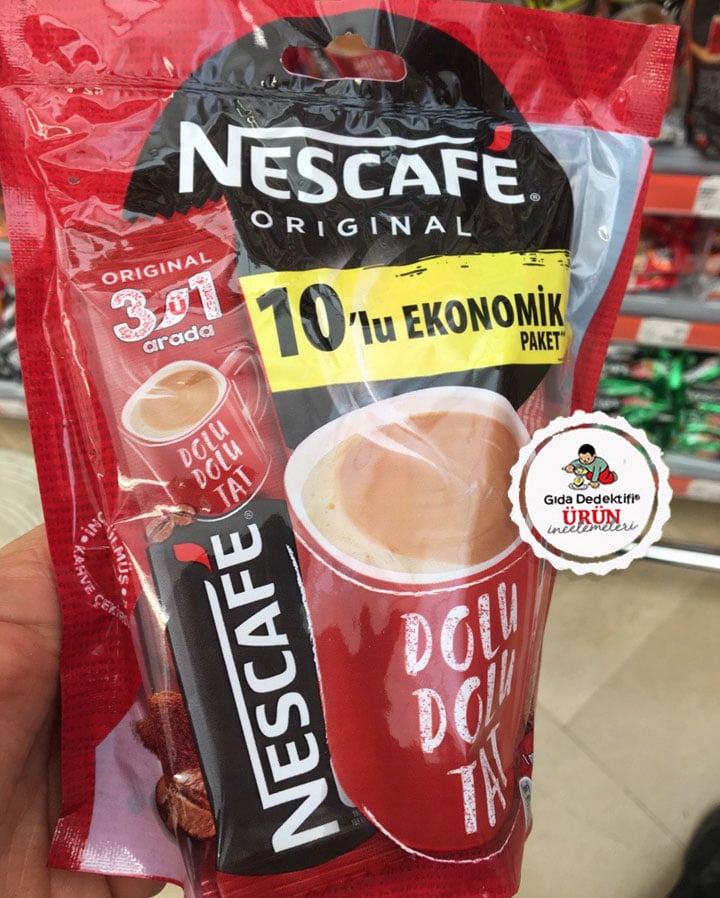Hazır kahve karışımlarına çokça sorulan Nescafé markasının 3’ü1 arada kahve karışımı ile devam ediyoruz. Ürün 17,5 gr.’lık poşetlerde ve çoğu markette de ekonomik çoklu paketlerde satılıyor. Ürünün mevzuata göre isminin Öğütülmüş Kahveli Kahve Beyazlatıcılı Çözünebilir Kahve Karışımı olduğunu söyleyelim. Ürün bu haliyle hem öğütülmüş kahve hem de çözünebilir kahve içeriyor.