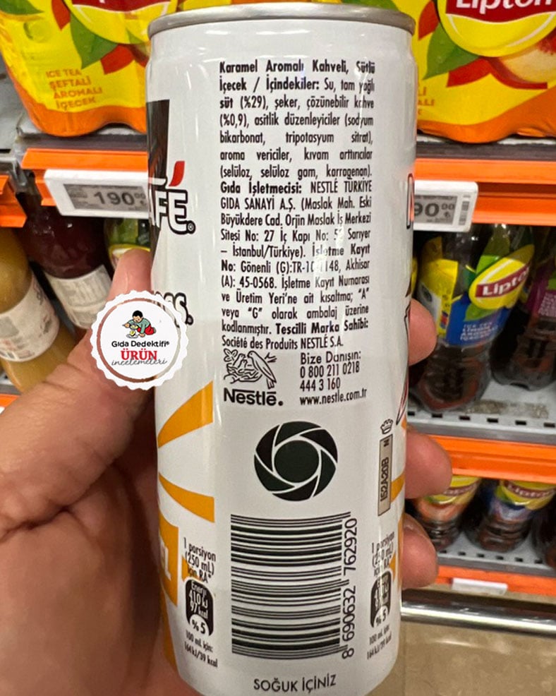 🔍İçindekiler: Su, tam yağlı süt (%29), şeker, çözünebilir kahve (%0,9), asitlik düzenleyiciler (sodyum bikarbonat, tripotasyum sitrat), aroma vericiler, kıvam artırıcılar (selüloz, selüloz gam, karragenan)
