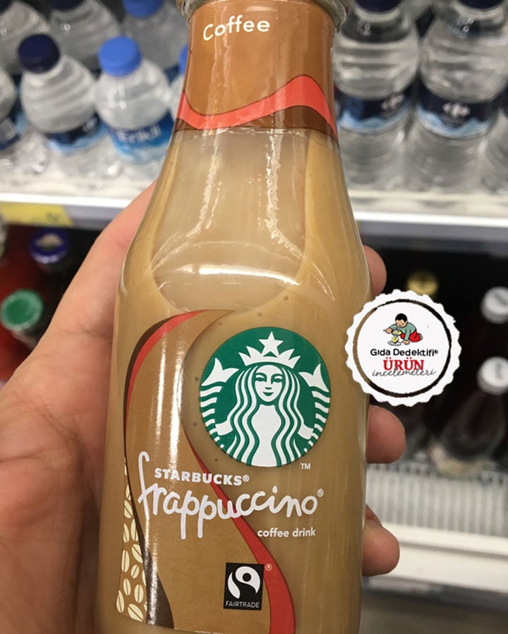Starbucks markasıyla marketlerde karşımıza çıkan bir ürünü inceleyeceğiz: Starbucks Frappuccino Coffee. Ürün yasal ismiyle Arabica Kahveli Süt Bazlı İçecek olarak geçiyor. Danimarka’dan ithal edilerek 250 ml.’lik cam şişelerde ülkemizde satışa sunulan ürün, soğuk kahve formatında içime hazır şekilde satılıyor.