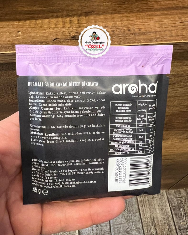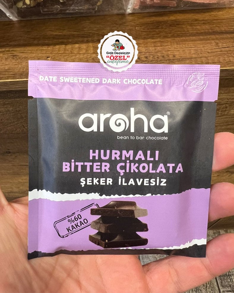 🔍Aroha Hurmalı %60 Kakaolu Bitter Çikolata Besin Değerleri