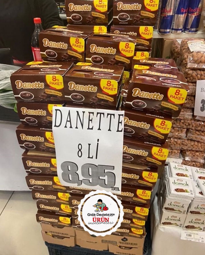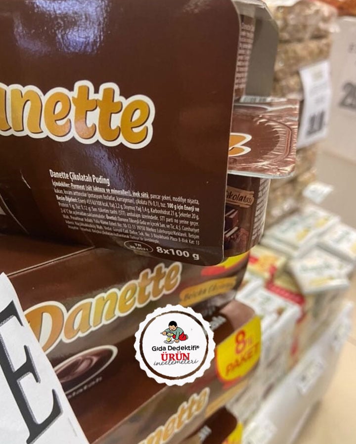 Bugün bir markette soğuk zincirden uzak şekilde satıldığı için tüketici şikayetine konu edilen Danette markalı Çikolatalı Puding içeriğine bakacağız. Ürün her biri 100 gr.’lık 8’li ambalajlarda satılıyor. Ürün etiketinde “2-6 santigrat derece açılmadan saklanmalıdır” uyarısı yer alıyor – ki bu da ürünün oda sıcaklığında değil, buzdolabında saklanması – yani soğuk zincirde tutulması – gerekliliğini gösteriyor. Ürünün üzerinde yazan “Belçika çikolatalı” ifadesi ise dikkatimizi çekiyor. Merak edip baktığımızda ürün içeriğinde %0,1 yani binde 1 oranında çikolata olduğunu görüyoruz. Yani 100 gr.’lık bir üründe 1 gr. değil, 1 gramın onda biri kadar çikolata bulunuyor.