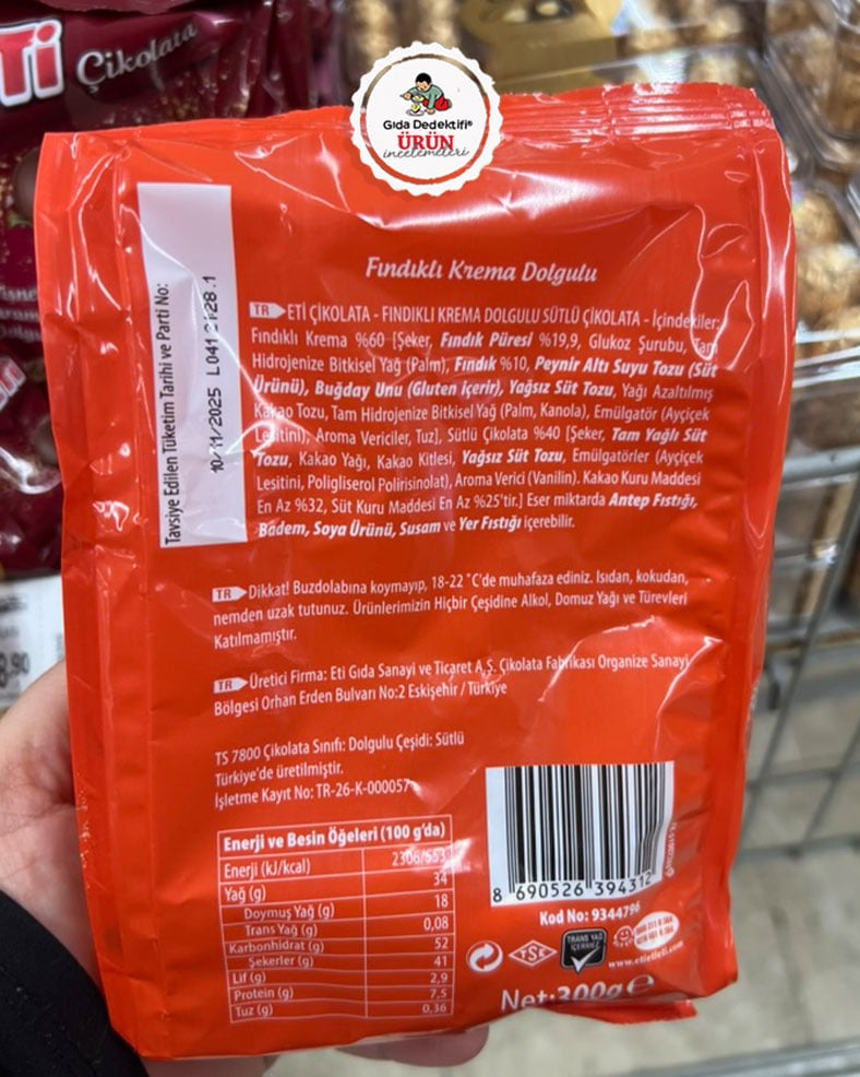 🔍Eti Fındıklı Kremalı Dolgulu Çikolata Besin Değerleri