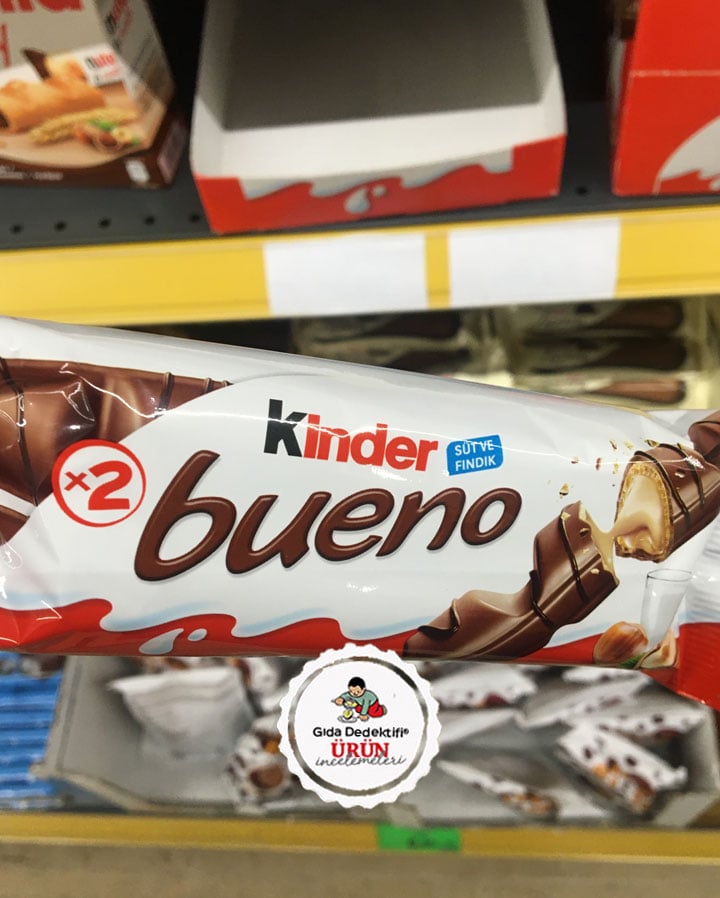 Daha çok çocuklara yönelik ürünleriyle bilinen fakat yetişkinlere yönelik farklı çikolata ve gofret çeşitleriyle de uzun yıllardır ülkemizde satışta olan Kinder markasının Bueno çeşidini inceleyeceğiz. Temel olarak süt ve fındık kreması dolgulu sütlü çikolata kaplı gofret olarak tanımlanan ürün içeriğinde 21,5 gr.’lık iki adet gofret bulunuyor. Ürün bu haliyle İtalya’dan ithal edilerek 43 gr.’lık ambalajlarda satılıyor.