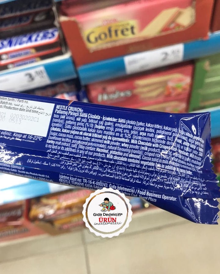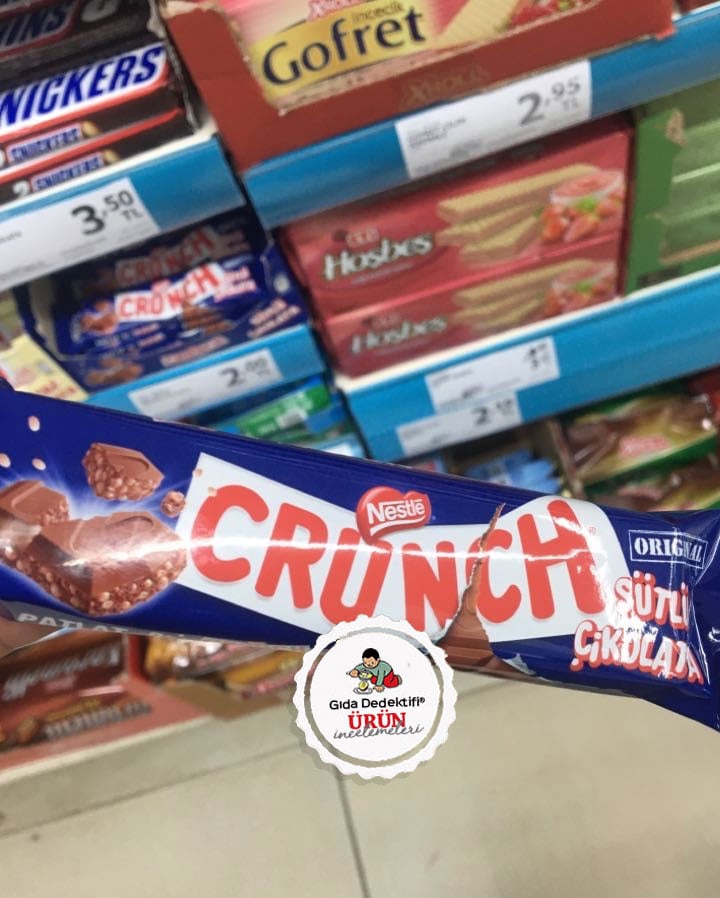 Uzun yıllardır raflarda olan ve “patlamış pirinç” kavramıyla bizi tanıştıran Nestlé markalı Crunch ürününü inceliyoruz. Ürün 33 gr.’lık ambalajlarda satılıyor. Ürün Nestlé Türkiye tarafından Bursa’da üretiliyor.