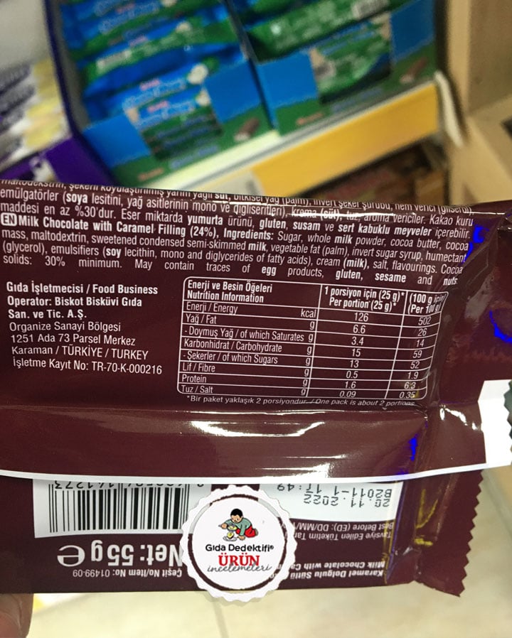 🔎Ülker Caramio Karamel Dolgulu Sütlü Çikolata Besin Değerleri