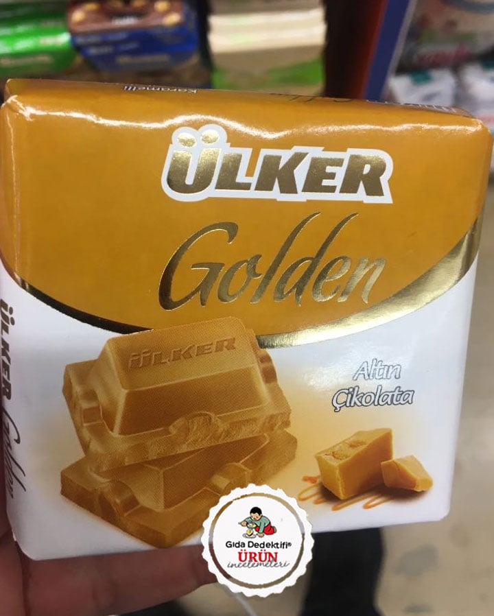 Son zamanlarda abur cubur üretimi yapan firmaların imdadına yetişen “tadına bakalım” tarzı hesaplarda öve öve bitirilemeyen Altın çikolata sloganıyla satışa çıkan Ülker Golden Karamelli Beyaz Çikolata’yı inceleyeceğiz. Ürün 60 gr.’lık paketlerde satılıyor.