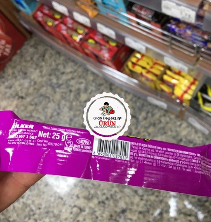 Ürün içeriğinde ilk 3 sırada; Şeker, Palm yağı ve Peynir altı suyu tozu bulunuyor. Üründe ilk sırada yer alan sofra şekerinin etkisiyle 100 gr.’da 54 gr. şeker yer alıyor – ki bu da 25 gr.’lık tek adette 13,5 gr. yani yaklaşık 7 tane küp şekere denk geliyor. Diğer bir deyişle yarısından fazlası şeker olan bu üründe ayrıca 8,5 gr. yağ bulunuyor. Daha net ifadeyle 25 gr.’lık ürünün 22 gramı ilave şeker ve palm yağından ibarettir. Üründe bu şeker yüküne karşılık 25 gr.’da yer alan lif miktarı ise sadece 0,7 gr. olarak göze çarpıyor. Bu da Dünya Sağlık Örgütü kriterlerine göre alınan şekerin hızla kana karışması anlamına geliyor.Üründe doymuş yağ oranı da – palm yağı kullanımıyla bağlantılı olarak yüksek görünüyor. Ürün 100 gr.’da içerdiği 34 gr. yağnın tam 26 gramının doymuş yağ olduğu görülüyor. Bu da 25 gr.’lık tek adette 6,6 gr. doymuş yağ anlamına geliyor. Daha net ifadeyle üründen alınan kalorinin tam %42’si doymuş yağdan geliyor – ki bu Dünya Sağlık Örgütü’nün kriterlerine göre yüksek bir oran olarak göze çarpıyor.