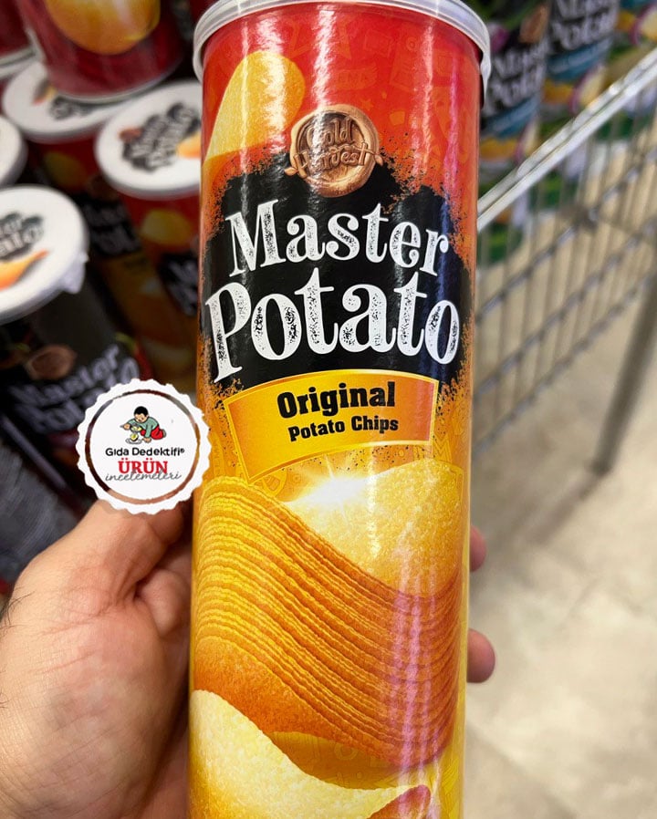 Pringles markalı cipslerin Türkiye’den çekildiği söylentileri sonrasında market reyonlarında yaygınlaşmaya başlayan ve Pringles ürünlerine benzerliğiyle dikkat çeken Gold Harvest markalı Master Patato Original Patates Cipsi’ni inceleyeceğiz. Ürün 160 gr’lık kutularda satışa sunuluyor. Ürünün etiket bilgileri çerçevesinde Gold Harvest firması tarafından Malezya’dan ithal edildiği anlaşılıyor.