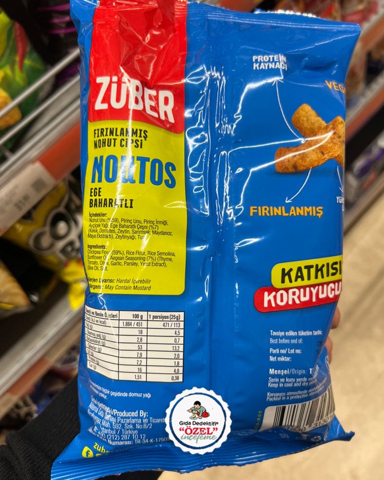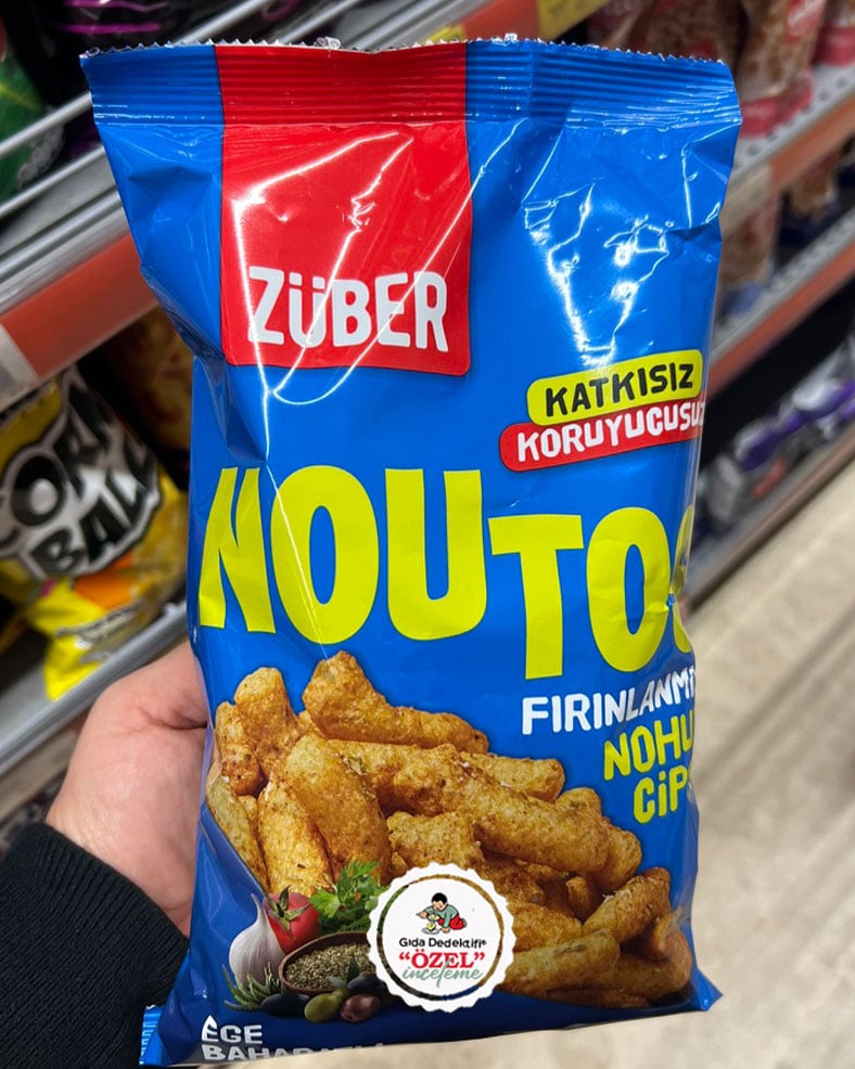 İlave şeker ve tatlandırıcı içermeyen doğal içerikli barlarıyla bilinen Züber markasıyla bir süredir satışa sunulan nohut cipslerinden Noutos’un Ege Bahartlı çeşidini inceleyeceğiz. 55 gr’lık paketlerde satışa sunulan ürün içeriğinde palm yağı veya türevleri ile herhangi bir katkı maddesi bulunmuyor. Ürün Esenyurt’taki Alterna Gıda tesislerinde üretilerek satışa sunuluyor.
