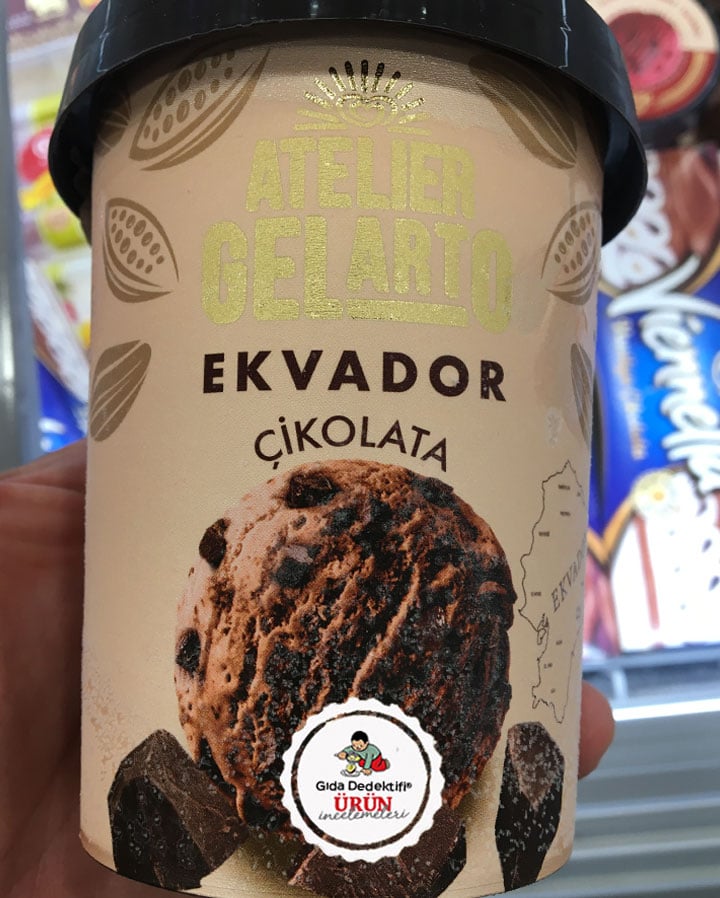 Yaz aylarında dondurma reyonlarında dikkatimizi çeken yeni ürünlerden Algida markalı Atelier Gelarto markalı yarım yağlı dondurmanın Ekvador Çikolatalı çeşidini inceleyeceğiz. Ürün 302 gr.’lık ambalajlarda satılıyor. Ürünün tek porsiyonu 60 gr. olarak ediliyor. Böylelikle tek kutuda 5 porsiyon ürün olduğunu söyleyebiliyoruz. Ürün temel olarak %94 oranında yarım yağlı çikolatalı dondurma ve %6 oranındada çikolata parçalarından ibarettir. Ürünün Çorlu ve Konya fabrikalarında üretildiğini,ürün içeriğindeki bitter çikolatada yer alan kakao kitlesinin Ekvador’dan ithal edildiğini belirtelim.