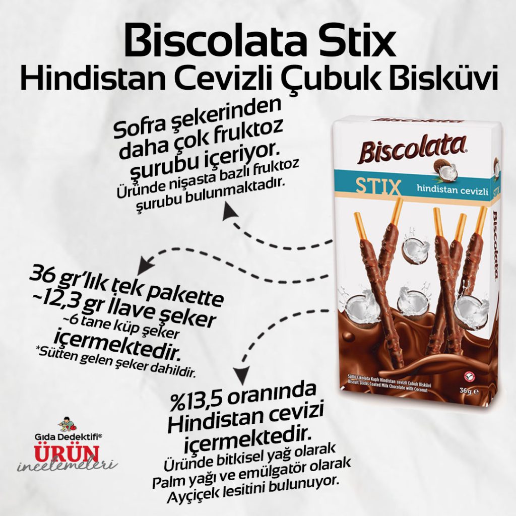 Üründe mezgitin yanı sıra sırasıyla Buğday unu, Bitkisel yağlar ve Şeker yer alıyor. Üründe bitkisel yağ olarak değişen miktarlarda ayçiçek ve kanola yağı kullanıldığını görüyoruz. Üründeki şeker miktarı ise 100 gr.’da 0,8 gr. olarak belirtiliyor. Üründe bu bileşenlerin yanı sıra pane harcında kullanılan maya, tuz, nişasta ve kıvam arttırıcı olarak guar gam bulunuyor. Üründe koruyucu veya aroma verici herhangi bir katkı maddesine rastlanmıyor.