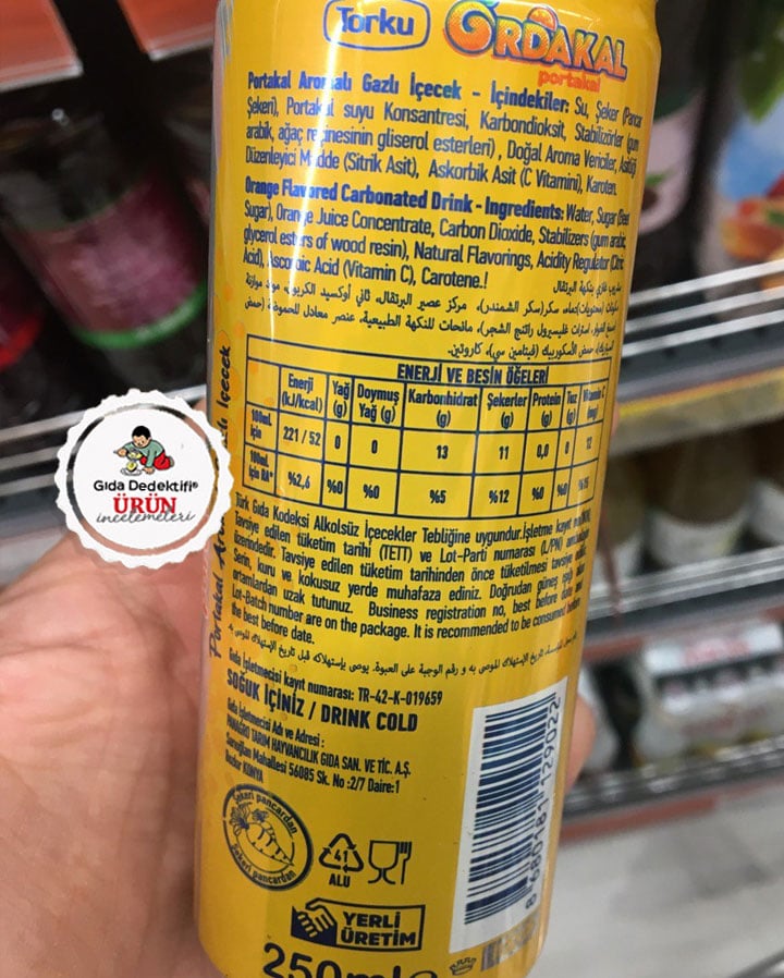 🔎Torku Ordakal Portakal Aromalı Gazlı İçecek Besin Değerleri