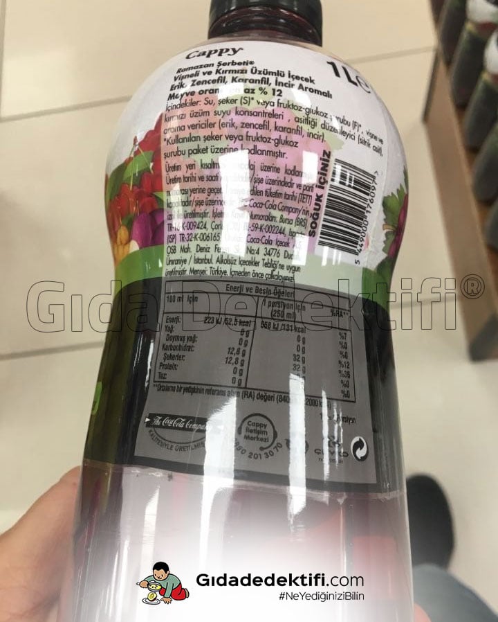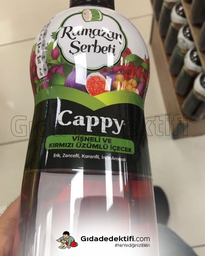 Ramazan ayında sorulan ürünlerden biri de Ramazan Şerbeti adı altında satılan meşrubatlardır. İlk olarak bugün markette karşılaştığımız Cappy Ramazan Şerbeti’ni inceleyeceğiz. Ürün Coca Cola tarafından üretilerek 1 litrelik pet şişelerde satılıyor. Öncelikle ürünün isminden başlayalım. Ramazan Şerbeti tanımlamasının mevzuatta bir karşılığı yok. Bu haliyle ürünün resmi adı Vişneli ve Kırmızı üzümlü içecek şeklindedir. Bunun yanı sıra üründe geçen senelerde bulunan “Geleneksel” ifadesi bu sene kaldırılmıştır.