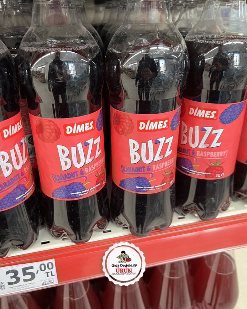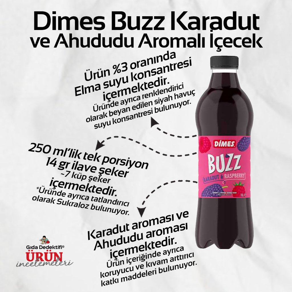 Dimes tarafından geçtiğimiz aylarda raflarda yer almaya başlayan ve karadut ile ahududu görselleriyle süslü ambalajlarda satışa sunulan Buzz Karadut & Raspberry isimli ürünü inceleyeceğiz. Ürün 1 litrelik şişelerde satışa sunuluyor ve içeriğinde %3 oranında meyve bulunduğu beyan ediliyor.