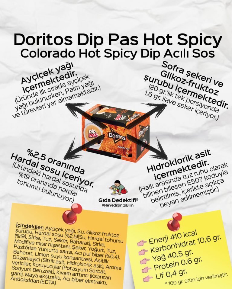 Ürün içeriğine baktığımızda ilk 3 sırada; Su, şeker ve elma suyu konsantresi olduğunu görüyoruz. Üründe bu haliyle karadut ve ahududu vurgusuyla satılmasına rağmen %3 oranındaki meyvenin elma suyu konsantresi olduğunu anlıyoruz. Diğer yandan üründe sırasıyla renklendiriciler, kıvam arttırıcı, aroma vericiler, koruyucular ve tatlandırıcı bulunuyor. Ürün siyah havuç suyu konsantresiyle renklendirilirken, ayrıca Brilliant Blue FCF ismiyle bilinen yapay renklendiricinin de kullanıldığı anlaşılıyor. Üründe karadut ve ahududu aroma vericileri bulunurken, görselleri ambalajları süsleyen bu meyvelerin ürün içeriğinde bulunmadığı görülüyor. Ürün ayrıca koruyucu olarak potasyum sorbat ve sodyum benzoat ile tatlandırıcı olarak sukraloz içeriyor.