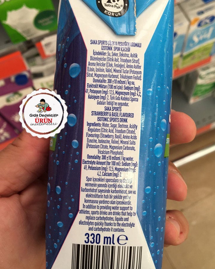 Yurtdışında birçok benzeri bulunan izotonik sporcu içeceklerine rakip olarak piyasaya sürülen ve Japon asıllı Dydo İçecek firması tarafından üretilen Saka Sports Çilek ve Fesleğen Aromalı İzotonik Spor İçeceğini inceliyoruz. Ürün, protein sütleri ve benzeri ürünlerden alışık olduğumuz 330 ml’lik kutularda satışa sunuluyor. Ürün üzerinde “Renklendirici ve Koruyucu içermez” ifadesi yer alıyor.