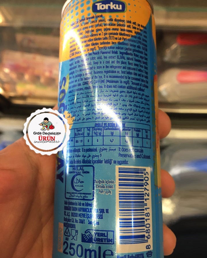 Yaz aylarının yaklaşmasıyla raflarda soğuk çay olarak bilinen aromalı gazsız içeceklerin sayısı da artmaya başladı. Bunlardan biri Torku markasıyla raflarda yer alan Şeftali Aromalı Soğuk Çay. Ürün 250 ml.’lik kutularda ve 1 litrelik şişelerde satılıyor, şeftali aromalı çeşidin yanında limon aromalı çeşidi de bulunuyor. Ürünün üretici bilgisi etikette yer almıyor fakat Ürün İşletmecisi olarak Panagro Tarım Hayvancılık San ve Tic. A.Ş. Bozkır Meyve İşleme Tesisi görünüyor.Ürünün Helal sertifikasına sahip olduğu etiket üzerinde beyan ediliyor.