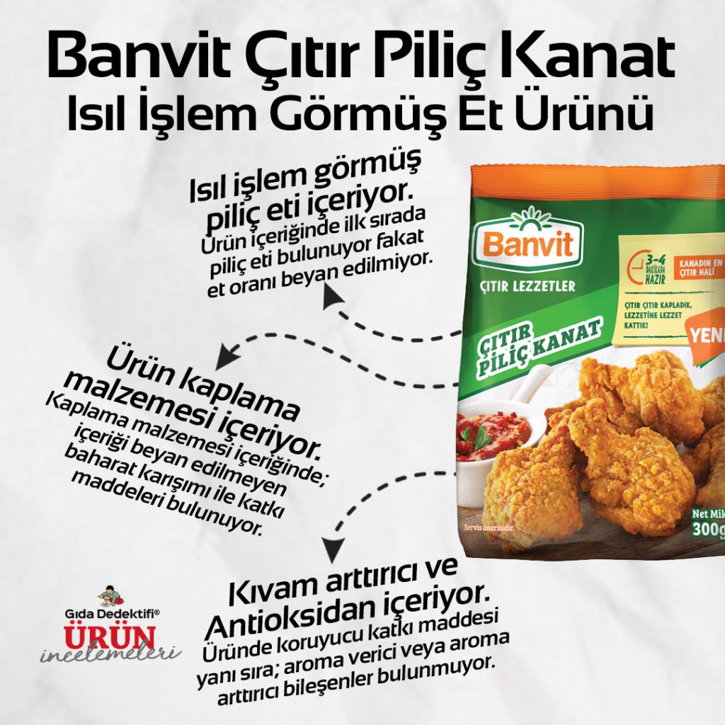 🔍Banvit Çıtır Piliç Kanat Isıl İşlem Uygulanmış Et Ürünü Besin Değerleri