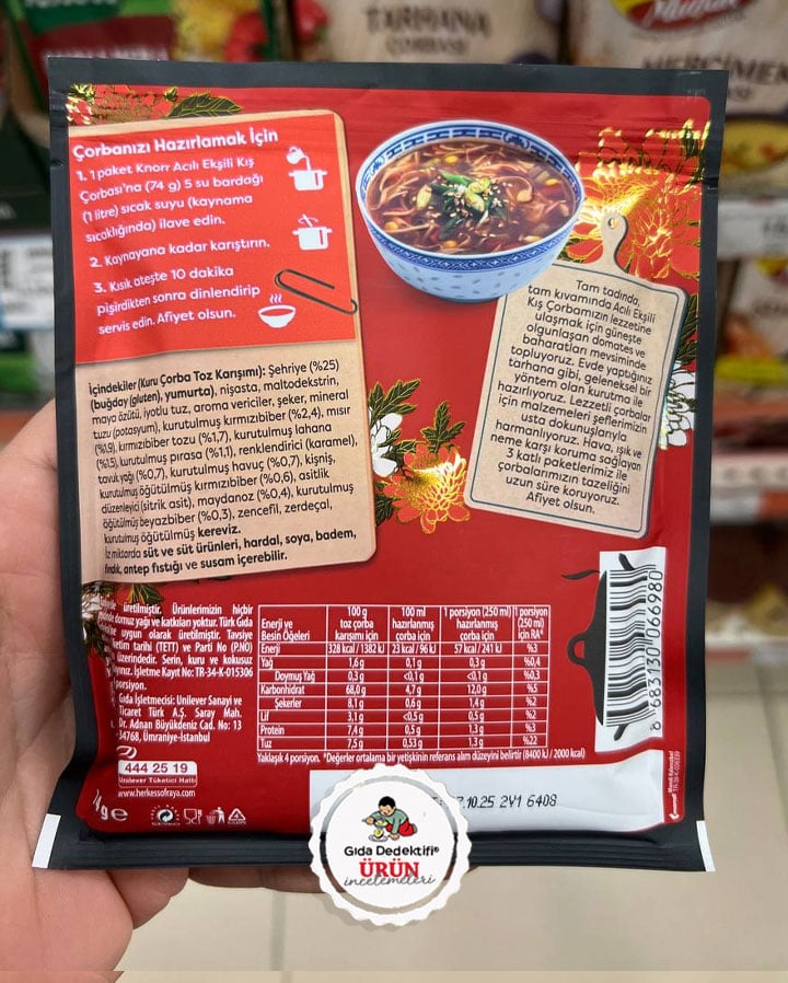 Market raflarında çok farklı çeşitte toz çorba karışımlarını gördüğümüz Knorr markasının yeni bir çeşidini inceleyeceğiz; Knorr Acılı Ekşili Kış Çorbası. Ürün 74 gr’lık paketlerde satışa sunuluyor.