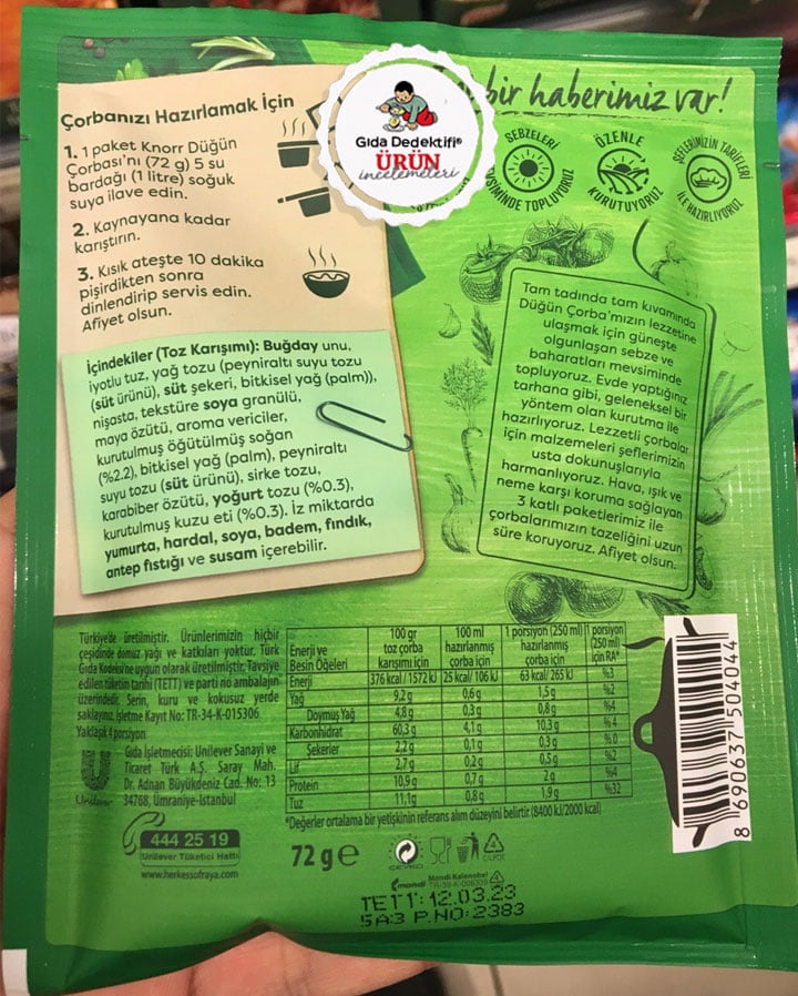 🔎Knorr Düğün Çorbası Besin Değerleri