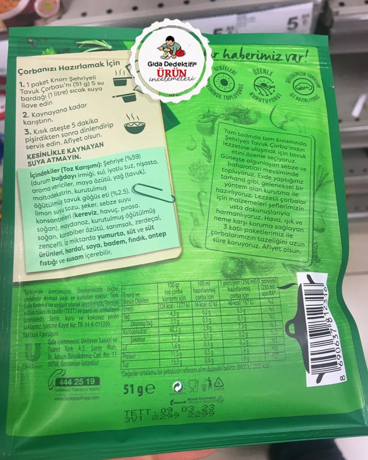 🔎Knorr Şehriyeli Tavuk Çorbası Besin Değerleri