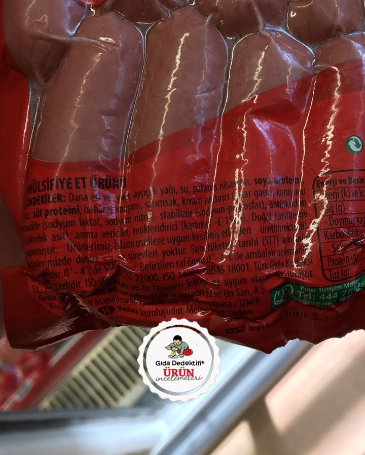 🔎Pınar Dana Kokteyl Sosis Emülsifiye Et Ürünü Besin Değerleri