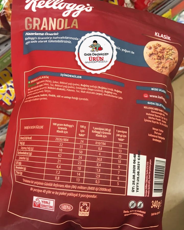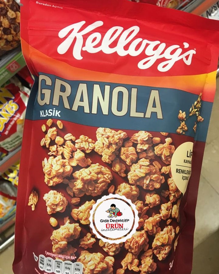 Son yıllarda çeşitli markalarla raflarda yer almaya başlanan granola ürünlerinden Kellogg’s markalı Granola Klasik ürününü inceleyeceğiz. Ürün 340 gr.’lık paketlerde satılıyor. Aslında sağlıklı bir ürün iddiası olmayan granola ülkemizde genelde fit veya sağlıklı olduğu iddiasıyla satılan ürünlerin yanında, aynı raflarda ve kahvaltılık gevrek standında bulunuyor. Granola temel olarak tahıl karışımından oluşan şeker veya bal içeren bir atıştırmalık olarak biliniyor. Ürün Kellogg Med Gıda firması tarafından Kellogg’s markasıyla Türkiye’de üretiliyor. Üründe ithal yulaf kullanıldığı etikette beyan edilse de, hangi ülkeden ithal yulaf kullanıldığı ise belirtilmiyor.