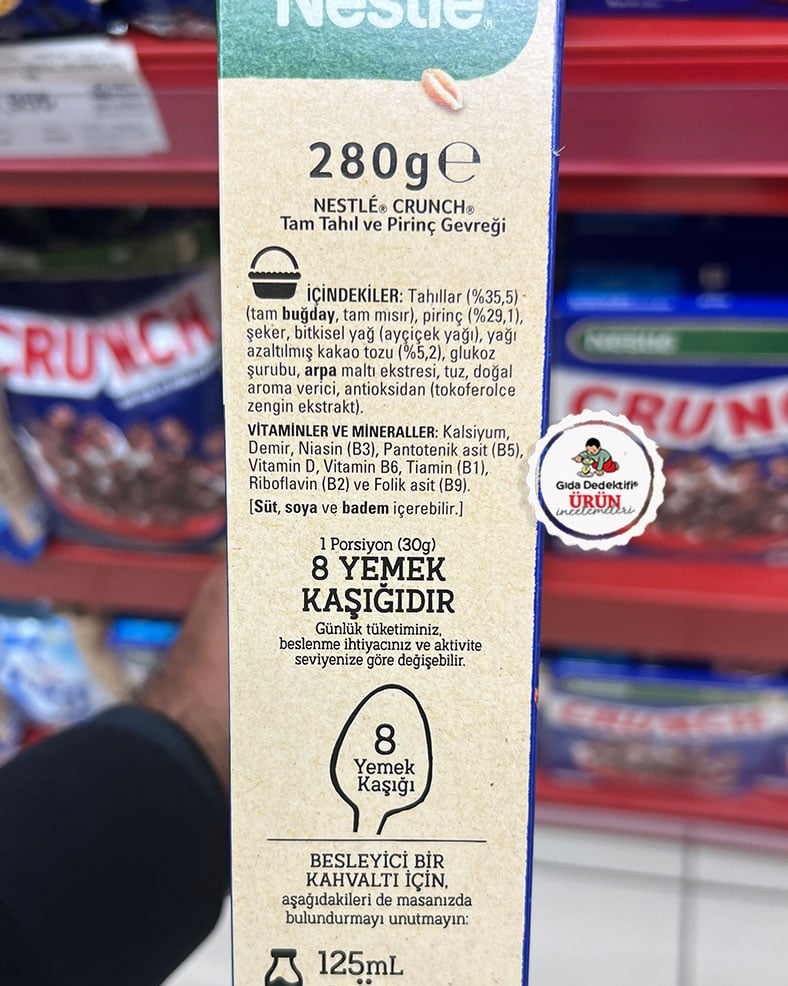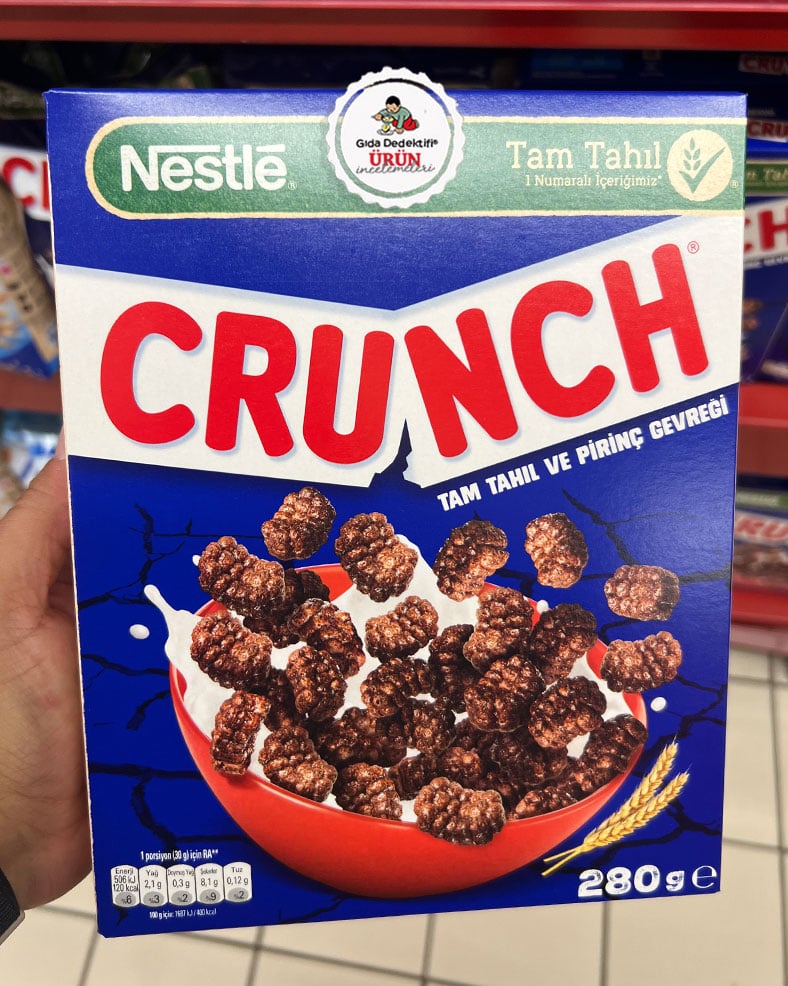 Gıda endüstrisinin uzun yıllardır “kahvaltılık” diye direttiği fakat ülkemizde yaygın şekilde kahvaltılık olarak tüketilmeyen tam tahıllı gevreklerden Nestlé Crunch markalı kakaolu tam tahıl ve pirinç gevreğini inceleyeceğiz. Ürün Bursa’daki Nestlé Türkiye tesislerinde üretiliyor ve 280 gr’lık paketlerde satışa sunuluyor.