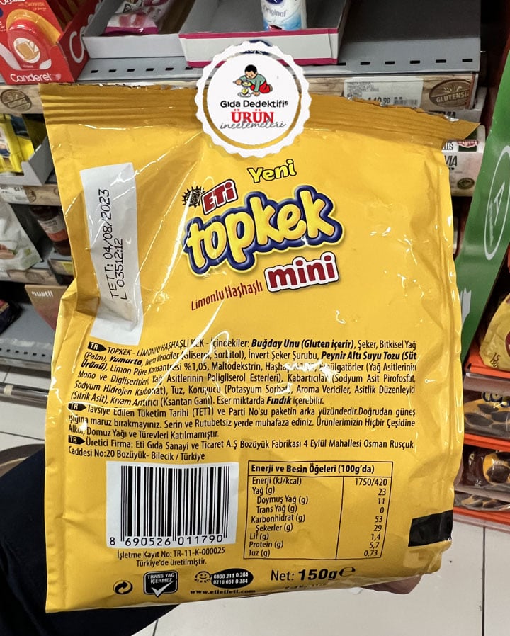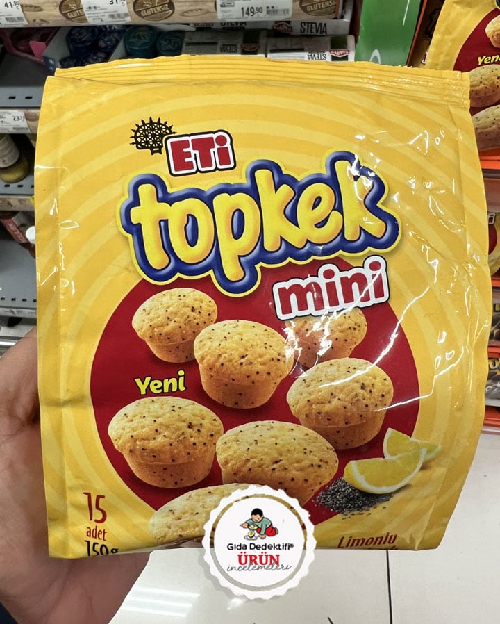 Eti markasının çok uzun yıllardır raflarda olan ürünlerinden Topkek’in “mini” versiyonuyla satışa sunulan Limonlu ve Haşhaşlı Kekleri inceleyeceğiz. Ürün 150 gr’lık paketlerde satılıyor. Ürünün tek paketinde 15 adet kek bulunurken bu da her bir kekin 10 gr olduğunu gösteriyor. Ürün ambalajında haşhaş ve limon görselleri yer alıyor. Ürün her ikisini de %1,05 gibi hassas hesaplanmış bir oranda içeriyor!