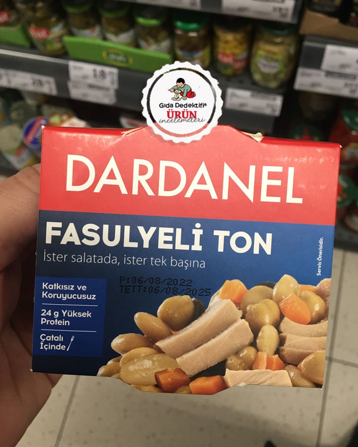 Son dönemlerde ton balığı ürünlerinden farklı olarak hazır yemek konseptinde konserve ürünler üretmeye başlayan Dardanel markasıyla satışa sunulan Fasulyeli Ton Balığı konservesini inceleyeceğiz. Ürün 185 gr.’lık paketlerde tek seferlik tüketime uygun olarak sunuluyor. Yemeye hazır olarak sunulan ürün ayrıca paketinde çatal ile birlikte satılıyor. Ürün ambalajında “ister salatada, ister tek başına” ibaresinin yanı sıra “katkısız ve koruyucusuz”, “24 gr. yüksek protein” ifadeleri dikkat çekiyor. Diğer yandan ürünün 3 yıl raf ömrüne sahip olduğu görülüyor.